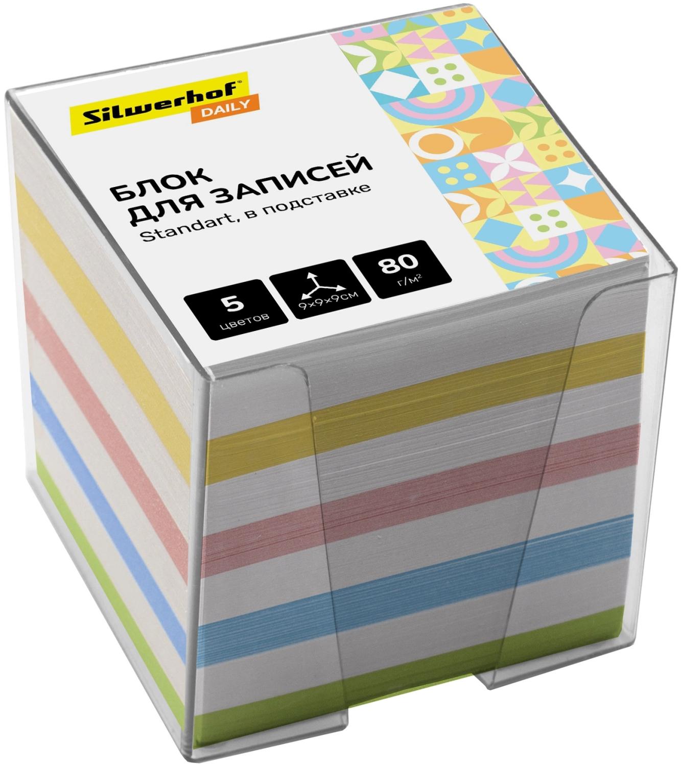 Блок для записей бумажный Silwerhof Daily Стандарт 90x90x90мм 80г / м2 ассорти 5цв.в упак. в подставке