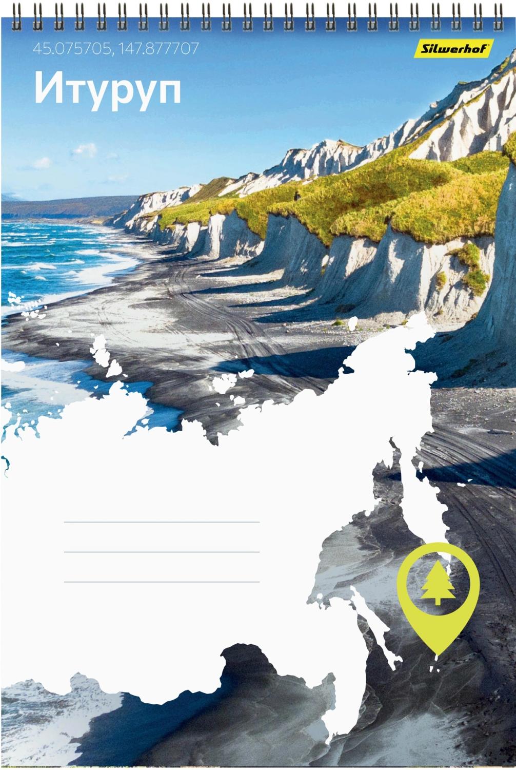 Блокнот Silwerhof КООРДИНАТЫ РОССИИ A4 обложка картон 80л клетка гребень Итуруп