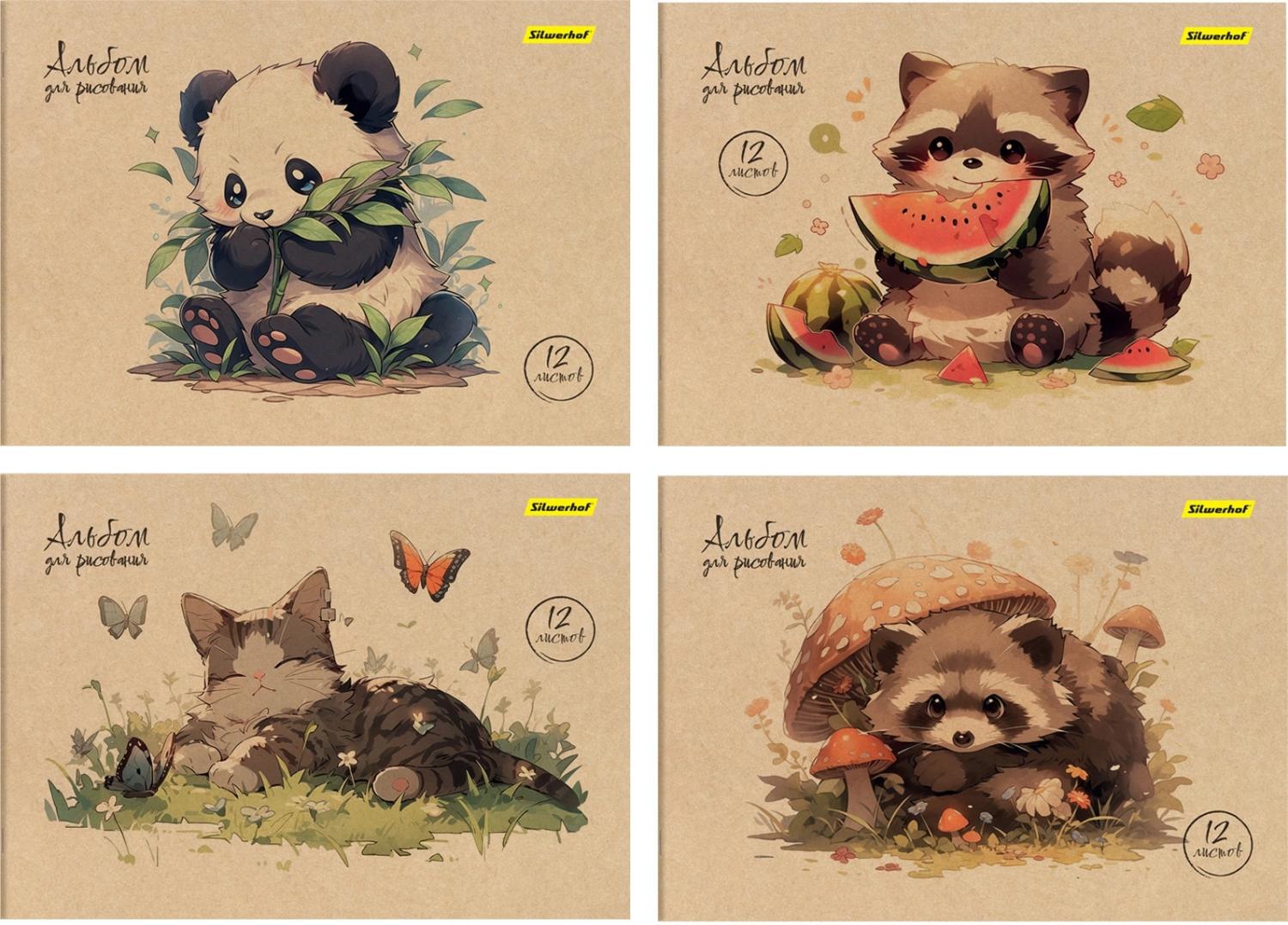 Альбом для рисования Silwerhof 12л. A4 Джунгли 4диз. мел.картон скрепка (упак.:4шт)