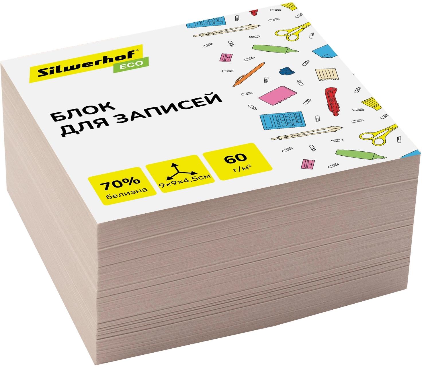 Блок для записей бумажный Silwerhof Eco Эконом 90х90х50мм 60г / м2 70% белый