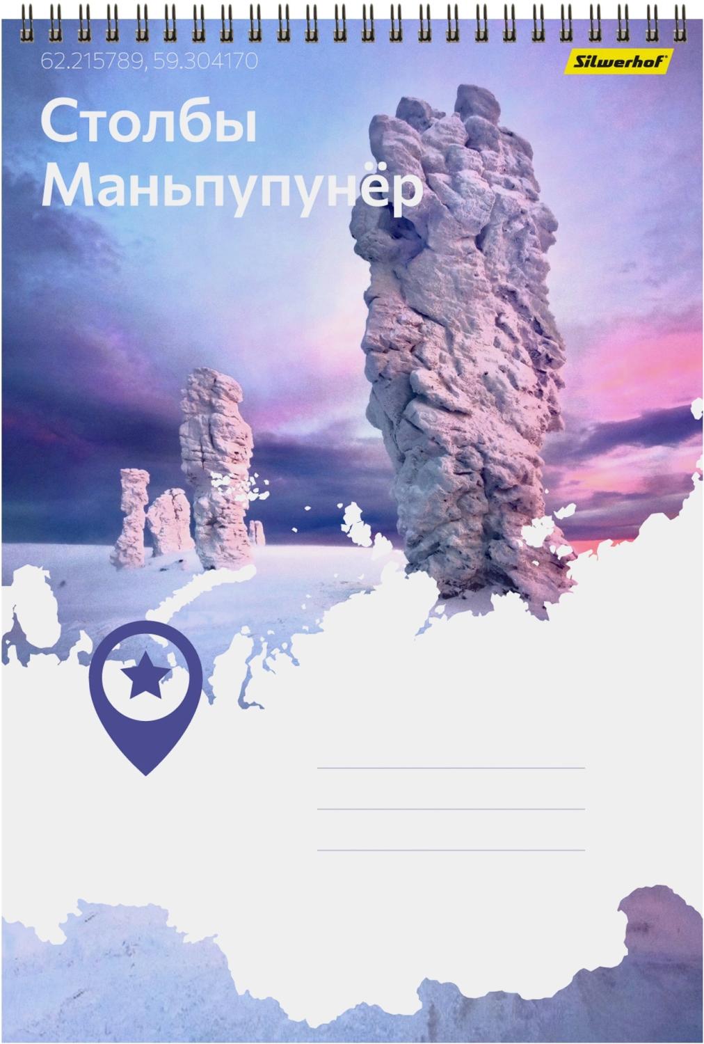 Блокнот Silwerhof КООРДИНАТЫ РОССИИ A4 обложка картон 80л клетка гребень Столбы Маньпупунёр
