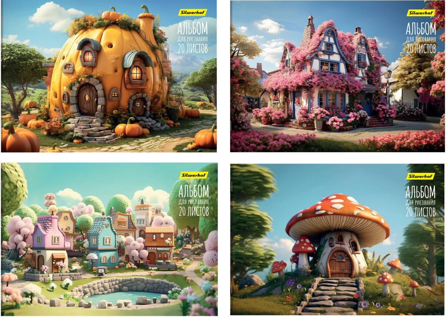 Альбом для рисования Silwerhof 20л. A4 Сказочный мир 4диз. мел.картон скрепка (упак.:4шт)