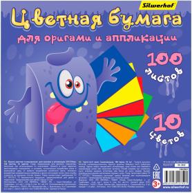 Бумага цветная Silwerhof для оригами и аппликации ассорти тонир. 100л. 10цв. Монстрики 80г / м2 210х210мм