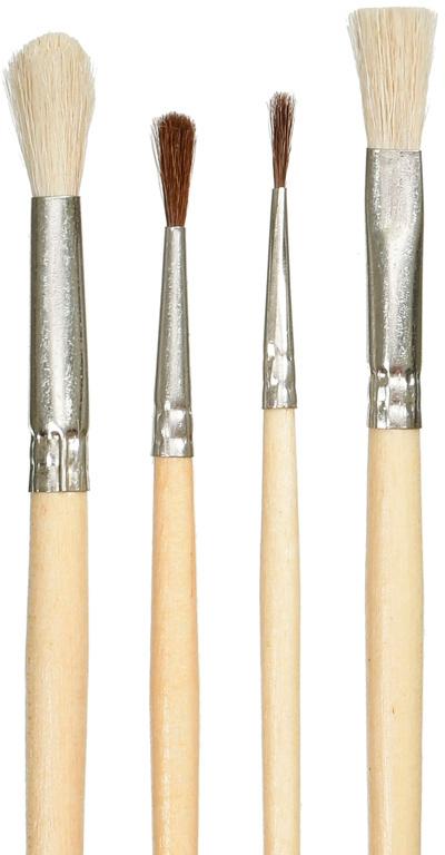 Набор кистей Silwerhof Монстрики (наб.4шт) пони круглая №1,2 / коза круглая №5 / коза плоская №6 дерев.лакир.ручка