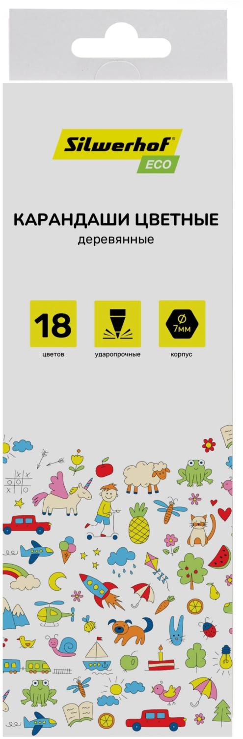 Карандаши цв. Silwerhof Eco 2.65мм шестигран. дерево ассорти 18цв. коробка / европод.