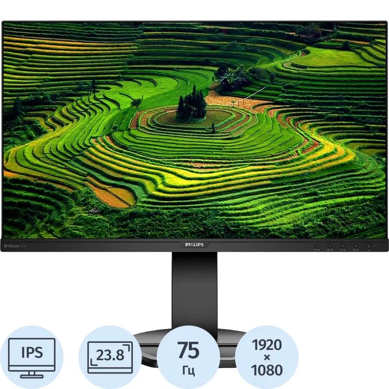 Монитор LCD 23.8'' 16:9 1920х1080(FHD) IPS, 75 Hz, 300 cd / m2, 1000:1, 50М:1, 4ms, VGA, DVI, HDMI, DP, USB-Hub, Height adj, Pivot, Tilt, Swivel, Speakers, Black (Из ремонта)