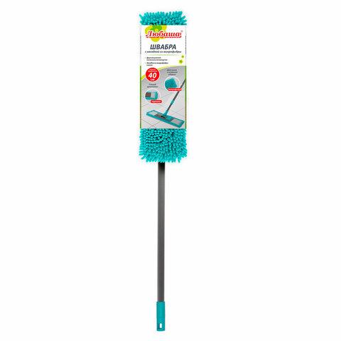 Швабра КОМПЛЕКТ флаундер 40 см + МОП микрофибра (ТИП К) + черенок 70-120 см, ЛЮБАША БЮДЖЕТ, 700052
