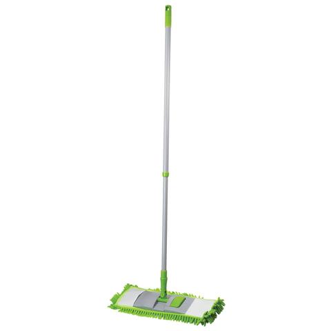Швабра с флаундером 40 см, телескопический черенок 70-120 см, еврорезьба, МОП из микрофибры букли "СИНЕЛЬ" (ТИП К), ЛЮБАША, 603602