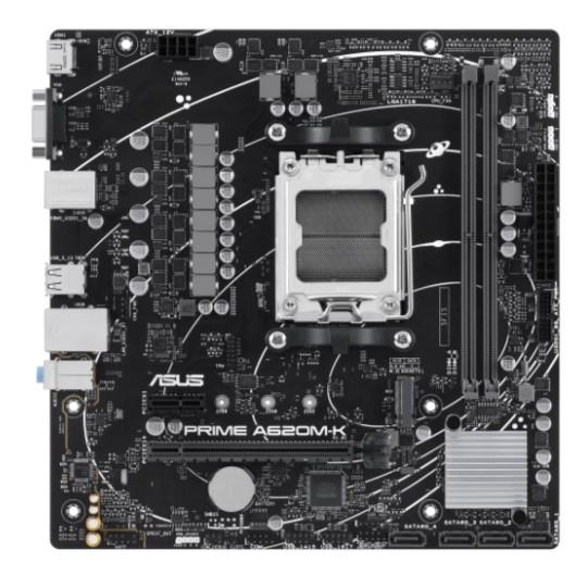 ASUS PRIME A520M-K (Socket AM4, mATX, 2xDDR4(64GB), VGA / HDMI 2.1, 1xPCIe 3.0x16 / 2xPCIe 3.0, 1xLAN, 4xSATA 6Gb / s, 1xM.2, 4xUSB 3.2, 2xUSB 2.0, 1xPS / 2)