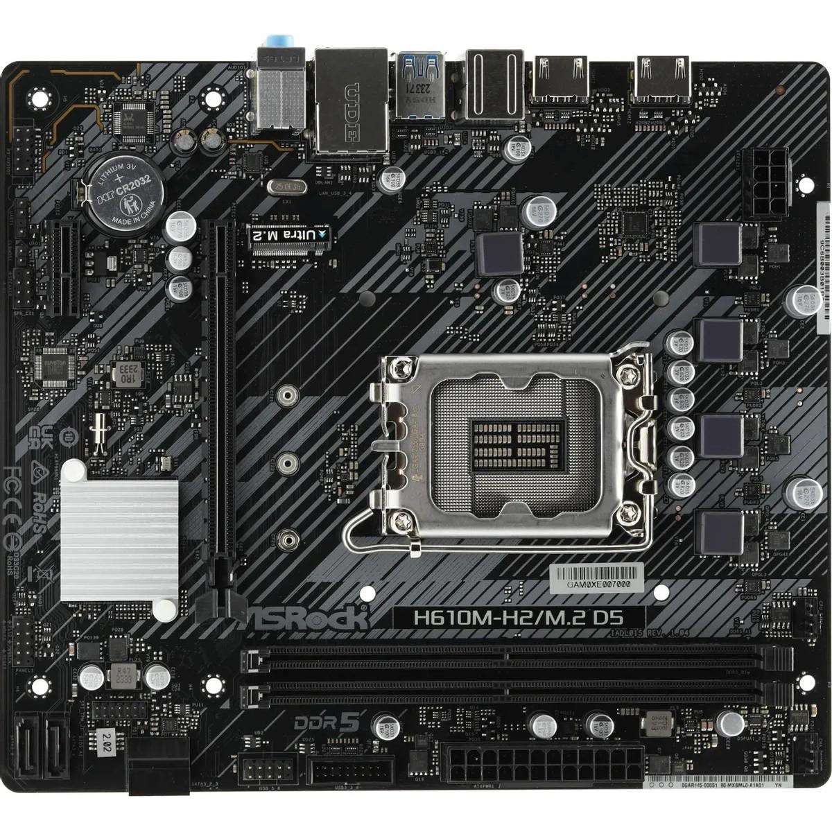 ASROCK H610M-H2 / M.2 D5, Socket 1700, Intel®H610, 2xDDR5-4800, HDMI+HDMI, 1xPCI-Ex16, 1xPCI-Ex1, 4xSATA3, 1xM.2, 8Ch Audio, GLan, (4+2)xUSB2.0, (2+2)xUSB3.2, 1xPS / 2, mATX, RTL