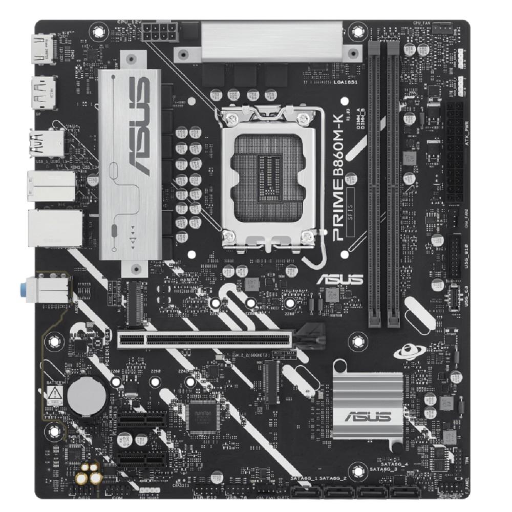 ASUS PRIME B860M-K (Socket 1851, mATX, 2xDDR5(128GB), DP / HDMI, 1xPCIe 4.0x16 / 2xPCIe 4.0x1, 1xLAN (2.5GbE), 4xSATA 6Gb / s, 2xM.2, 3xUSB 3.2, 3xUSB 2.0)