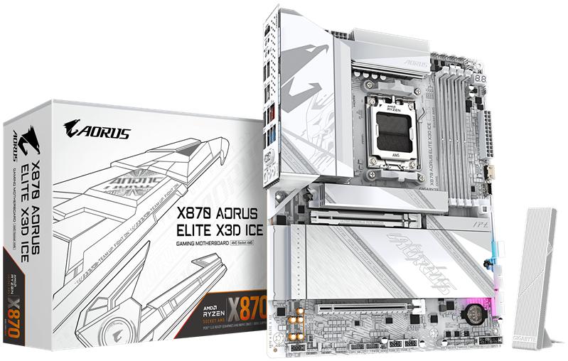 Материнская плата GIGABYTE X870 AORUS ELITE X3D ICE, AM5, X870, 4*DDR5, 2*SATA, 4*M.2, 6*USB 3.2, 1*USB 2.0, 2*Type-C, 3*PCIx16, HDMI, ATX