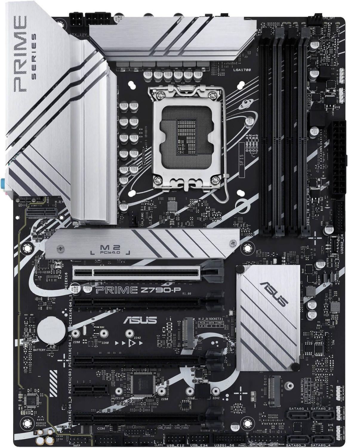 ASUS PRIME Z790-P (Socket 1700, ATX, 4xDDR5(192GB), DP / HDMI, 1xPCIe 5.0x16 / 3xPCIe 4.0x16 / 1xPCIe 3.0, 1xLAN (2.5GbE), 4xSATA 6Gb / s, 3xM.2, 1xM.2 E key, 1xType-C, 3xUSB 3.2, 4xUSB 2.0, 1xPS / 2)