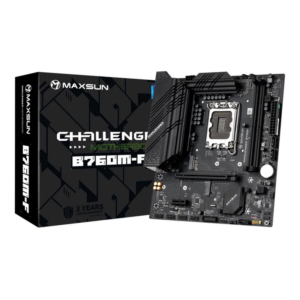 Материнская плата Maxsun MS-Challenger B760M-F B760, LGA1700, 2*DDR4, 1*PCIEx16, 1*PCIEx1, 1*M.2, 4*USB3.2Gen1, 6*USB2.0, 3*SATA3.0, 1G, VGA, HDMI, M-ATX, RTL