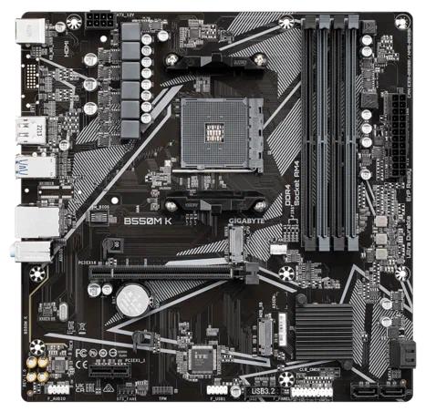 Материнская плата GIGABYTE B550M K, AM4, B550, 4*DDR4, 4*SATA, 2*M.2, 4*USB 3.2, 4*USB 2.0, 1*PCIx16, 1*PCIx1, HDMI+DP, mATX