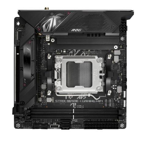 ASUS ROG STRIX B650E-I GAMING WIFI (Socket AM5, mini ITX, 2xDDR5(64GB), HDMI 2.1, 1xPCIe 5.0x16, 1xLAN (2.5GbE), Wi-Fi 6E, BT, 2xSATA 6Gb / s, 2xM.2, 2xType-C, 4xUSB 3.2, 2xUSB 2.0)