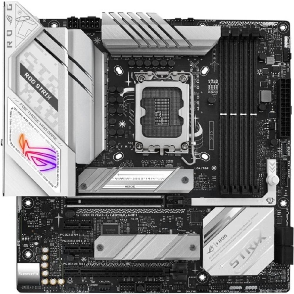 ASUS ROG STRIX B760-A GAMING WIFI (Socket 1700, ATX, 4xDDR5(192GB), DP / HDMI, 1xPCIe 5.0x16 / 1xPCIe 3.0x16 / 2xPCIe 3.0, 1xLAN (2.5GbE), Wi-Fi 6E, BT, 4xSATA 6Gb / s, 3xM.2, 2xType-C, 3xUSB 3.2, 4xUSB)