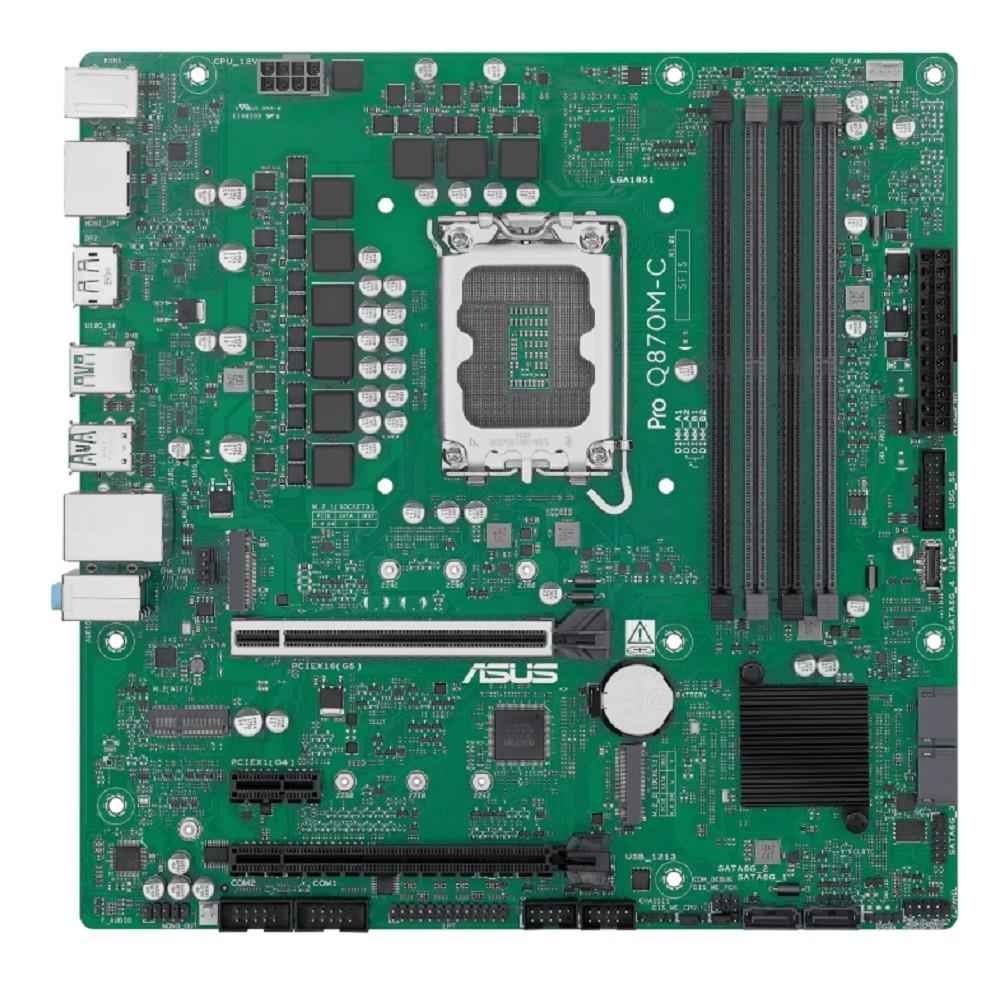 ASUS PRO Q870M-C-CSM (Socket 1851, mATX, 4xDDR5, 2xDP / HDMI, 1xPCIe 4.0x16, / 1xPCIe 3.0, 1xLAN, 4xSATA 6Gb / s, 2xM.2, 1xM.2 E key, 3xUSB 3.2, 2xUSB 2.0, 2xPS / 2)