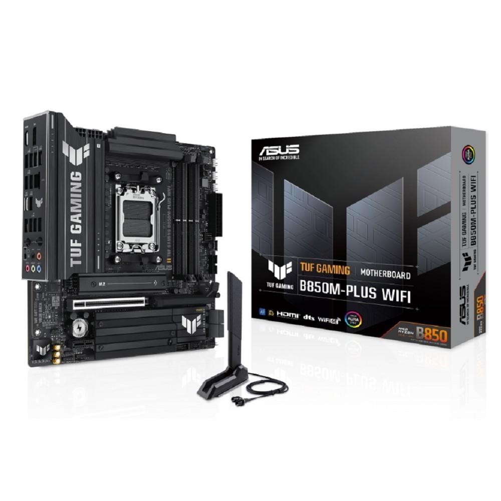 ASUS TUF GAMING B850M-PLUS WIFI (Socket AM5, mATX, 4xDDR5(256GB), DP / HDMI, 1xPCIe 5.0x16 / 1xPCIe 4.0x1, 1xLAN (2.5GbE), Wi-Fi, BT, 4xSATA 6Gb / s, 3xM.2, 1xType-C, 7xUSB 3.2, 4xUSB 2.0)