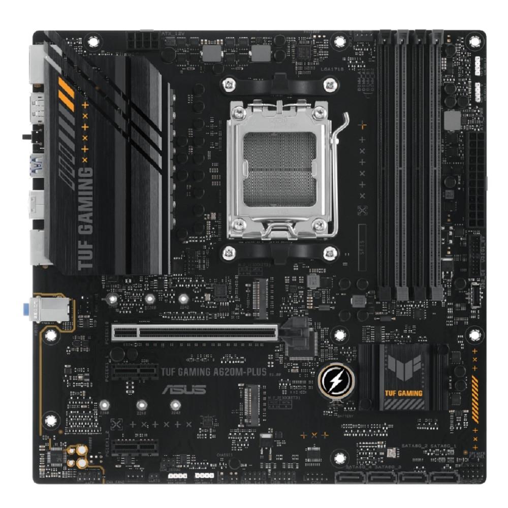 ASUS TUF GAMING A620M-PLUS (Socket AM5, mATX, 4xDDR5(128GB), 2xDP / HDMI, 1xPCIe 4.0x16 / 2xPCIe 3.0, 1xLAN (2.5GbE), 4xSATA 6Gb / s, 2xM.2, 2xUSB 3.2, 4xUSB 2.0, 1xPS / 2)