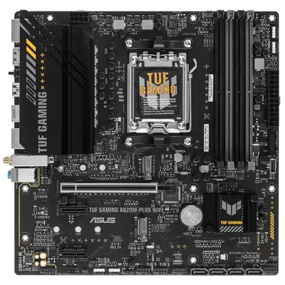 ASUS TUF GAMING A620M-PLUS WIFI (Socket AM5, mATX, 4xDDR5(128GB), 2xDP / HDMI 2.1, 1xPCIe 4.0x16 / 2xPCIe 3.0, 1xLAN (2.5GbE), Wi-Fi, BT, 4xSATA 6Gb / s, 2xM.2, 2xUSB 3.2, 4xUSB 2.0, 1xPS / 2)