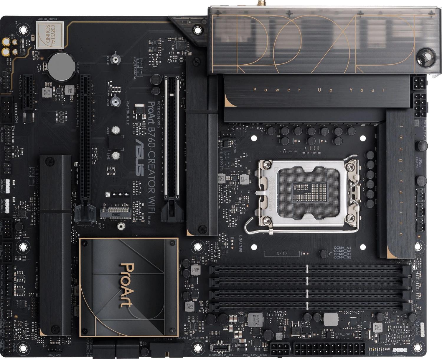 ASUS PROART B760-CREATOR (Socke1700, ATX, 4xDDR5(192GB), DP / HDMI, 1xPCIe 5.0x16 / 1xPCIe 4.0x16 / 1xPCIe 3.0, 1xLAN+1xLAN (2.5GbE), 4xSATA 6Gb / s, 3xM.2, 1xM.2 E key, 1xType-C, 4xUSB 3.2, 4xUSB 2.0)