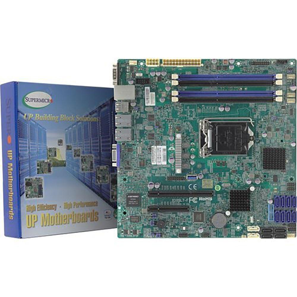 Материнская плата SuperMicro MBD-X10SL7-F-O, RTL microATX Up to 32GB Unbuffered ECC UDIMM, DDR3-1600MHz, in 4 DIMM slots 4x 240-pin DDR3 DIMM socket 2 SATA3 (6Gbps) ports 4 SATA2 (3Gbps) ports 2 RJ45 Gigabit Ethernet LAN ports 1 RJ45 Dedicated IPMI