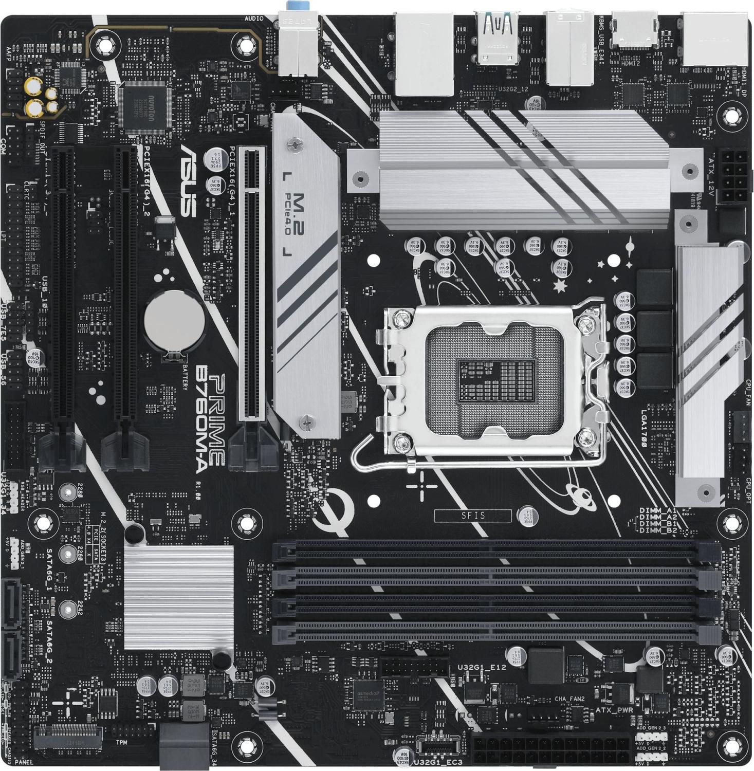 ASUS PRIME B760M-A-CSM (Socket 1700, mATX, 4xDDR5(128GB), 2xDP / HDMI, 3xPCIe 4.0x16, 4xSATA 6Gb / s, 2*M2, 2,5xLAN, 2xUSB 3.1, 4xUSB 2.0, 1xPS / 2)