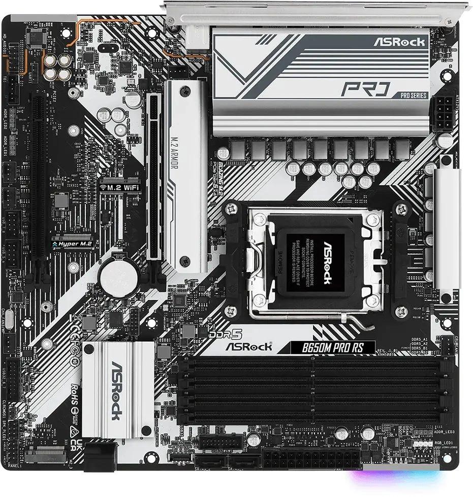 Материнская плата ASROCK B650M PRO RS, AM5, B650, 4*DDR5, 4*SATA, 3*M.2, 3*USB 3.2, 4*USB 2.0, Type-C, 2*PCIx16, 1*M.2 (Key E), HDMI+DP, mATX