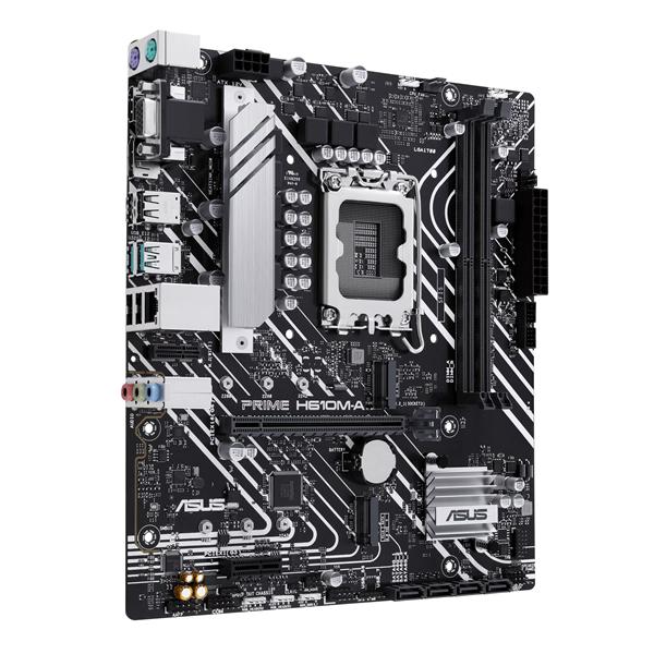 ASUS PRIME H610M-A-CSM (Socket 1700, mATX, 2xDDR5(96GB), VGA / DP / HDMI, 1xPCIe 4.0x16 / 1xPCIe 3.0, 1xLAN, 4xSATA 6Gb / s, 2xM.2, 1xM.2 E key, 2xUSB 3.2, 2xUSB 2.0, 2xPS / 2)