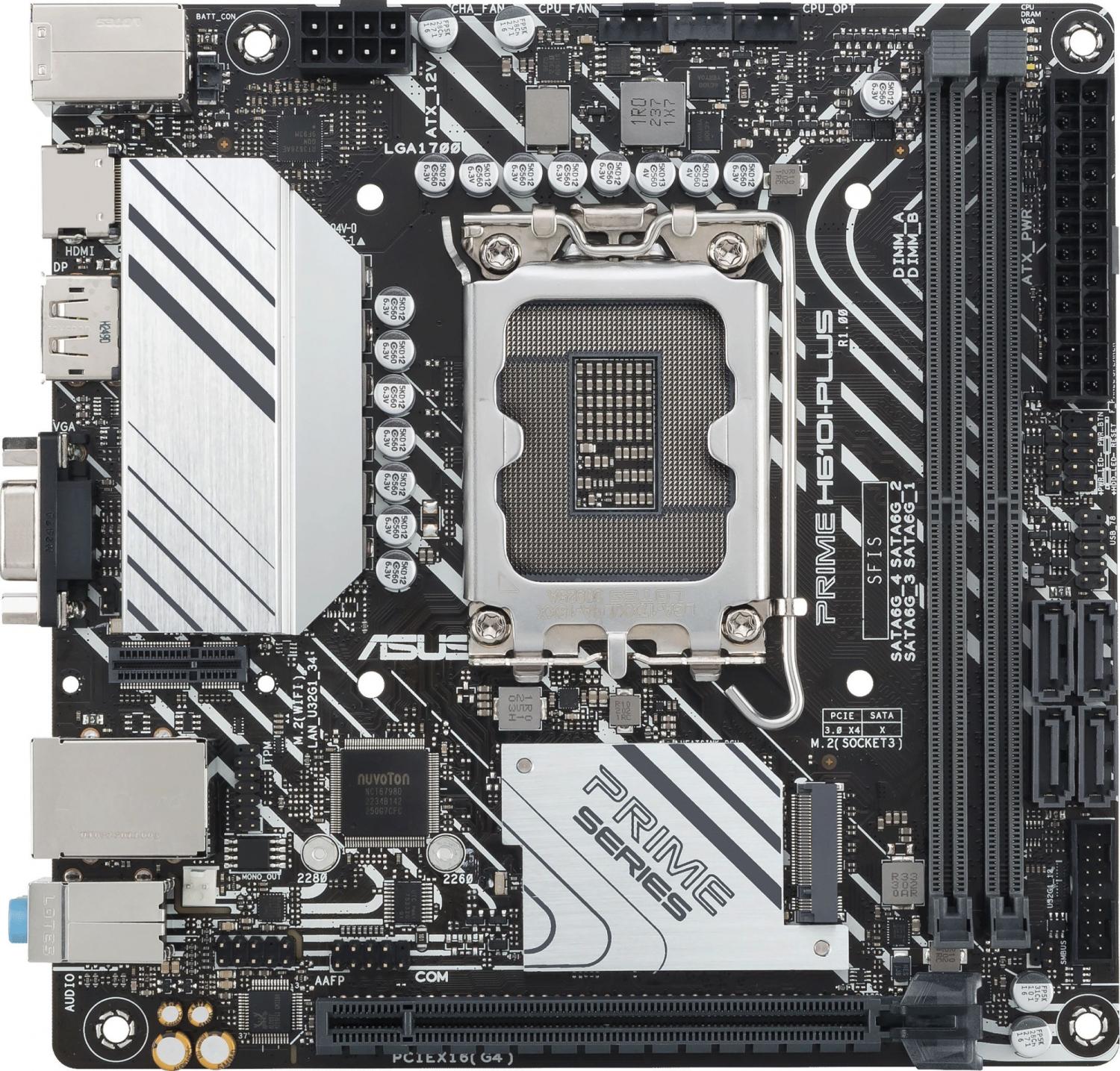 ASUS PRIME H610I-PLUS-CSM (Socket 1700, mini ITX, 2xDDR5(96GB), VGA / HDM / DP, 1xPCIe 4.0x16, 1xLAN, 4xSATA 6Gb / s, 1xM.2, 1xM.2 E key, 2xUSB 3.2, 2xUSB 2.0, 1xPS / 2)