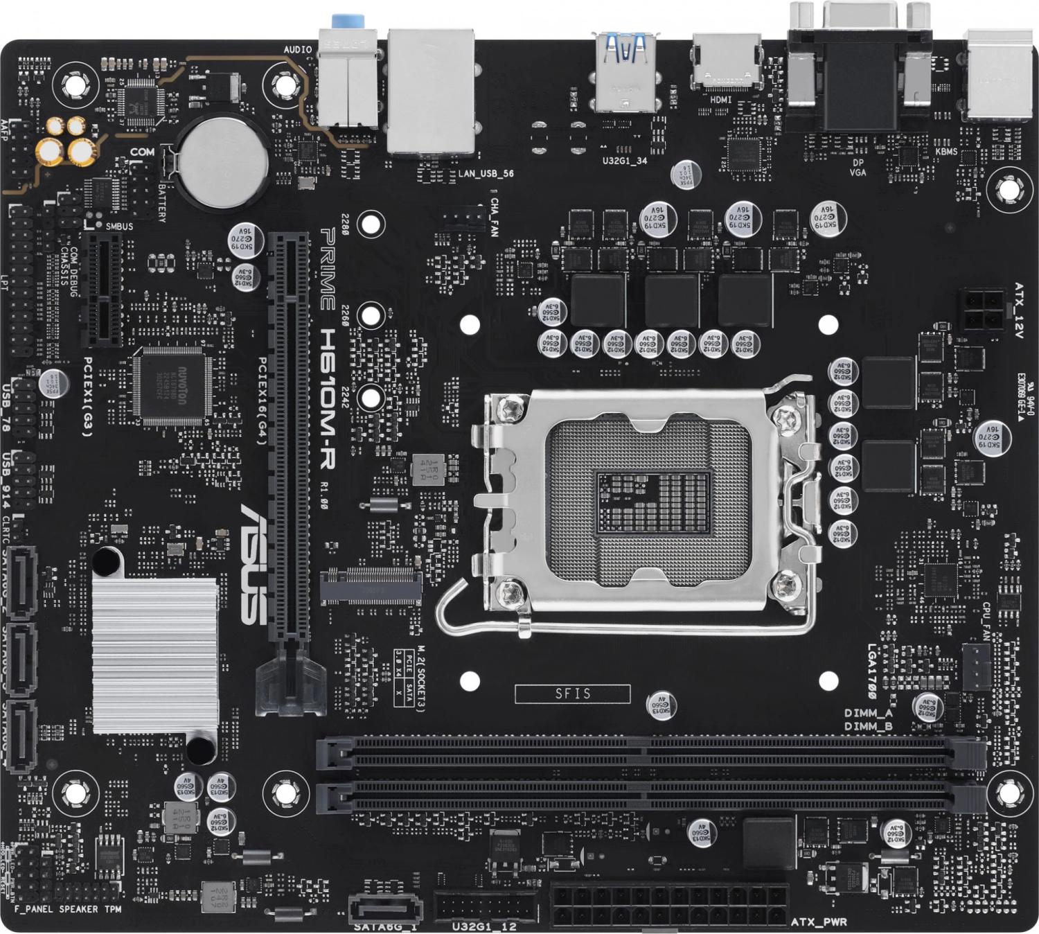 ASUS PRIME H610M-R-SI (Socket 1700, mATX, 2xDDR5(96GB), DP / VGA / HDMI, 1xPCIe 4.0x16 / 1xPCIe 3.0, 1xLAN, 4xSATA 6Gb / s, 1xM.2, 2xUSB 3.2, 2xUSB 2.0, 2xPS / 2)