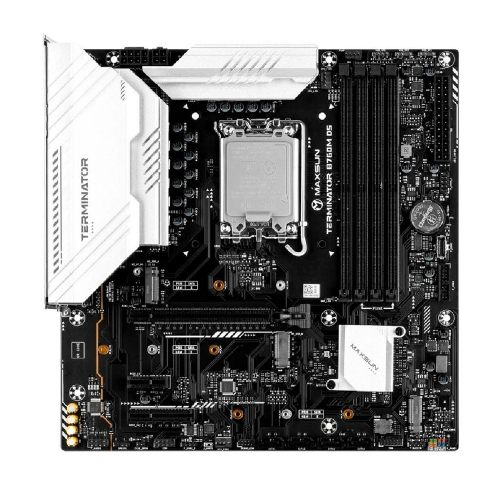 MAXSUN MS-Terminator B760M D5 WiFi (Socket 1700, mATX, 4*DDR5, DP / HDMI, 4xSATA3, 3*M.2,xPCI-E x16 / 1xPCI-E x1, 6*USB 2.0, 2 * USB 3.2 Gen1, LAN 1*2.5G, Bluetooth, Wi-Fi 802.11ax, RTL)