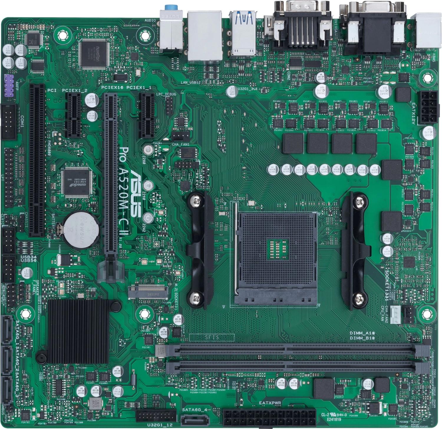 Материнская плата Asus PRO A520M-C II / CSM Soc-AM4 AMD A520 2xDDR4 mATX AC`97 8ch(7.1) GbLAN RAID+VGA+DVI+HDMI+DP