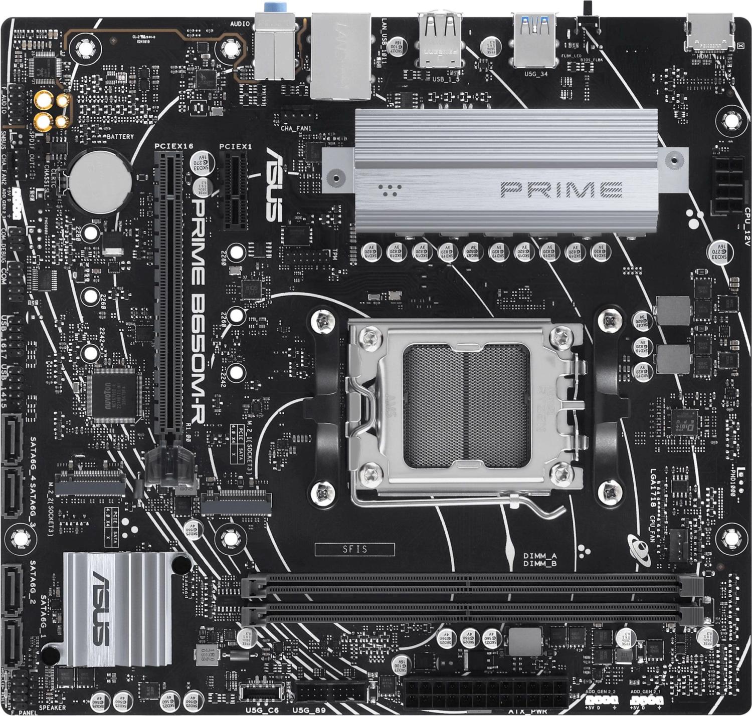 ASUS PRIME B650M-R (Socket AM5, mATX, 2xDDR5(96GB), HDMI 2.1, 1xPCIe 4.0x16 / 1xPCIe 4.0, 1xLAN (2.5GbE), 4xSATA 6Gb / s, 2xM.2, 2xUSB 3.2, 4xUSB 2.0)