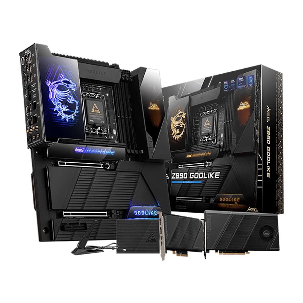 Материнская плата MSI MEG Z890 GODLIKE Z890, LGA1851, 4*DDR5, 2*PCIEx16, 1*PCIEx4, 8*M.2, 7*TypeC, 8*USB3.2Gen2, 4*USB3.2Gen1, 4*USB2.0, 4*SATA3.0, 10G, 5G, 2xType-C(DP), E-ATX, RTL
