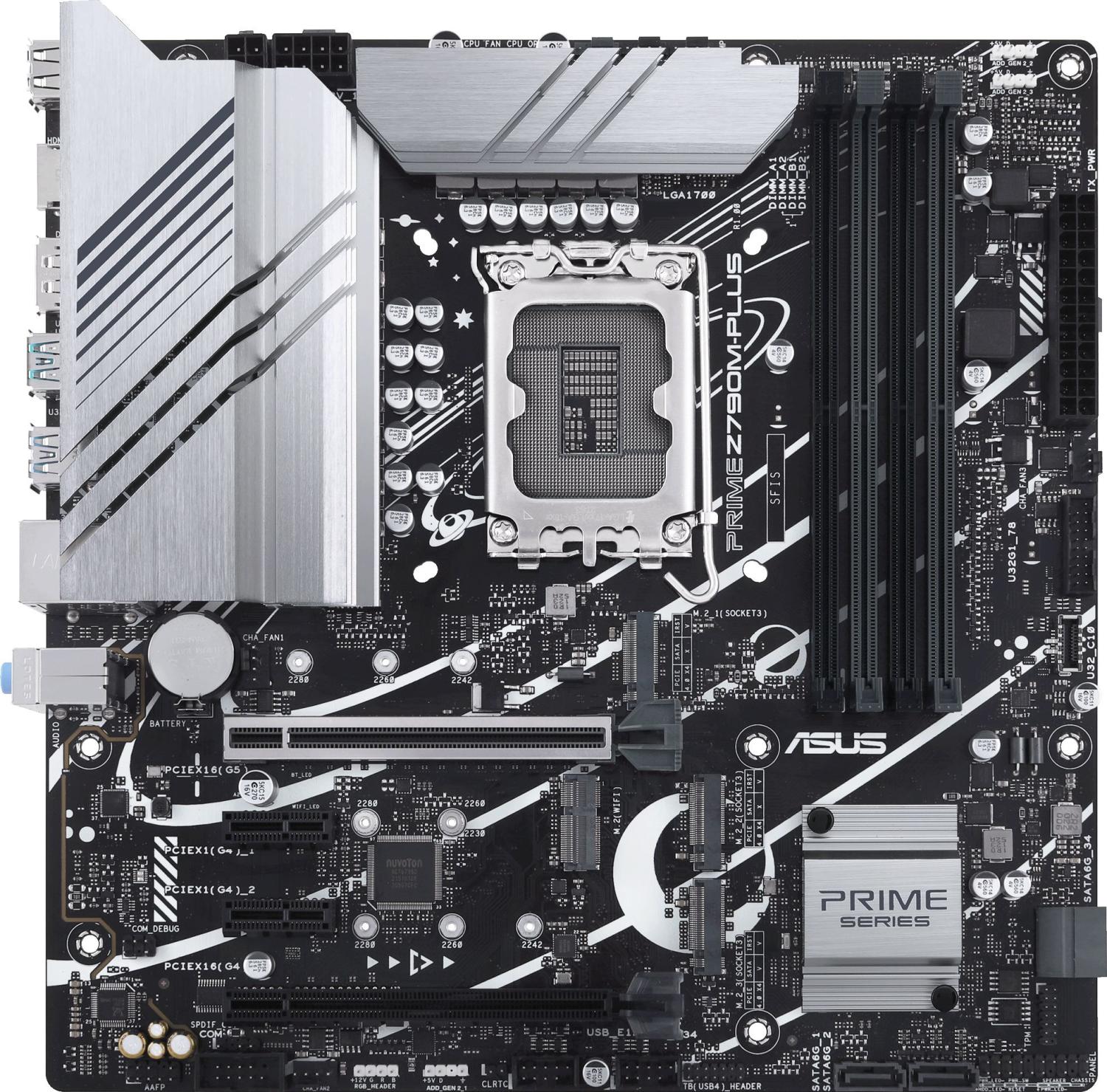 ASUS PRIME Z790M-PLUS (Socket 1700, mATX, 4xDDR5(192GB), DP / HDMI, 1xPCIe 5.0x16 / 1xPCIe 4.0x16 / 2xPCIe 4.0, 1xLAN, 4xSATA 6Gb / s, 3xM.2, 1xM.2 E key, 1xType-C, 5xUSB 3.2, 2xUSB 2.0)