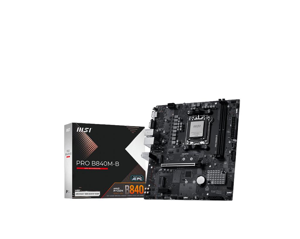 Материнская плата MSI PRO B840M-B B840, AM5, 2*DDR5, 1*PCIEx16, 1*PCIEx1, 2*M.2, 1*TypeC, 6*USB3.2Gen1, 6*USB2.0, 4*SATA3.0, 2.5G, VGA, HDMI, ATX, RTL