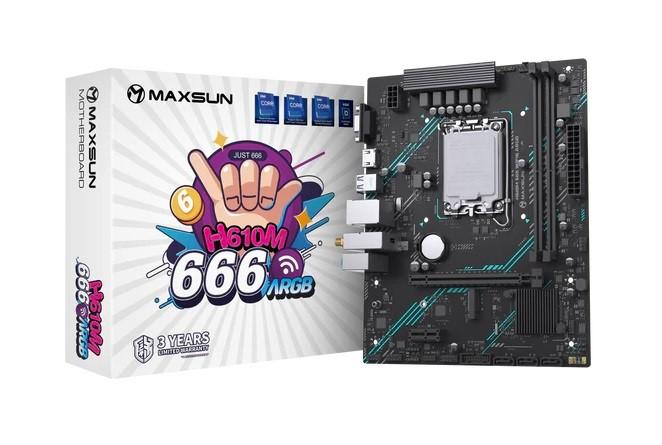 Материнская плата MAXSUN MS-H610M 666 WIFI6 ARGB, LGA1700, H610, 2*DDR4, 3*SATA3, M.2, USB 3.2, USB 2.0, 1*PCIEx16, 1*PCIEx1, VGA+HDMI, mATX
