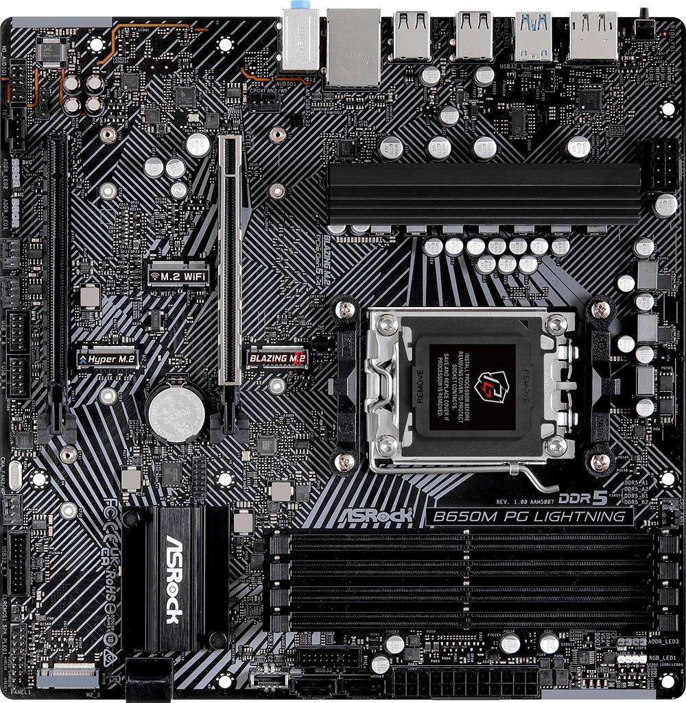 Материнская плата Asrock B650M PG LIGHTNING Socket AM5 AMD B650 4xDDR5 mATX AC`97 8ch(7.1) 2.5Gg RAID+HDMI+DP