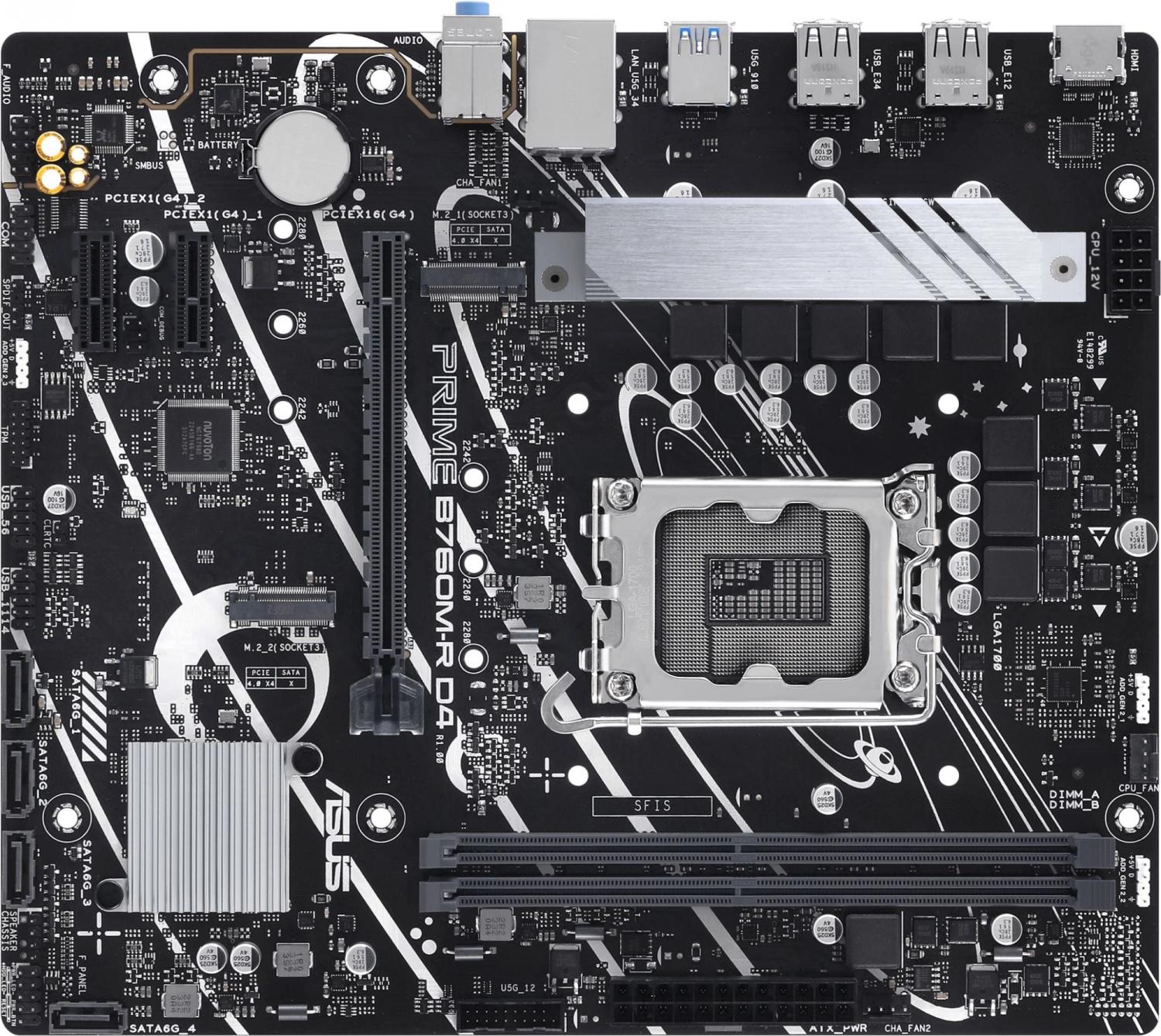 Материнская плата Asus PRIME B760M-R D4 Soc-1700 Intel B760 2xDDR4 mATX AC`97 8ch(7.1) 2.5Gg RAID+HDMI
