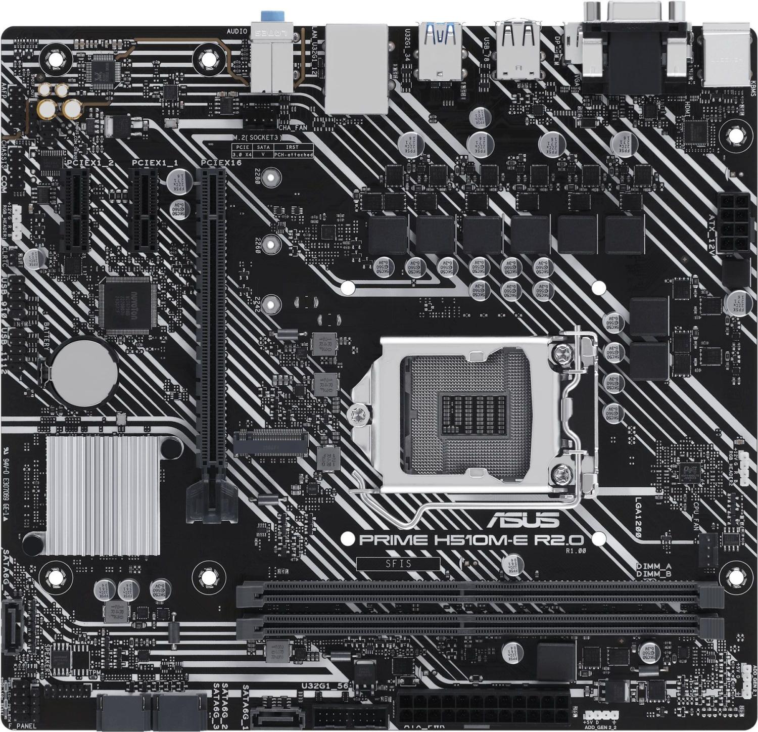 Материнская плата ASUS PRIME H510M-E R2.0 Soc-1200 Intel H470 2xDDR4 mATX AC`97 8ch(7.1) GbLAN+VGA+HDMI+DP [PRIME H510M-E R2.0]