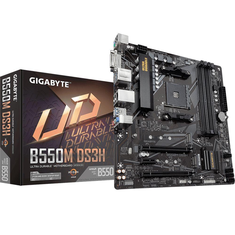 Материнская плата Gigabyte B550M DS3H, Socket AM4, AMD B550, 4xDDR4-3200, DVI-D+HDMI, 2xPCI-Ex16, 1xPCI-Ex1, 4xSATA3(RAID 0 / 1 / 10), 2xM.2, 8 Ch Audio, GLan, (4+2)xUSB2.0, (4+2)xUSB3.2, 1xPS / 2, mATX, RTL {10} (809416)