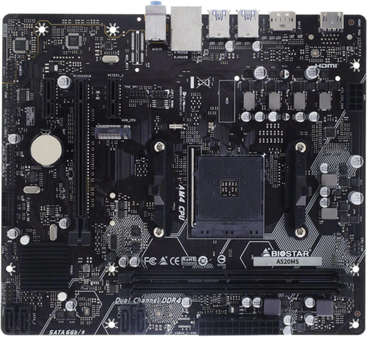 Материнская плата Biostar A520MS Soc-AM4 AMD A520 2xDDR4 mATX AC`97 8ch(7.1) GbLAN RAID+HDMI+DP