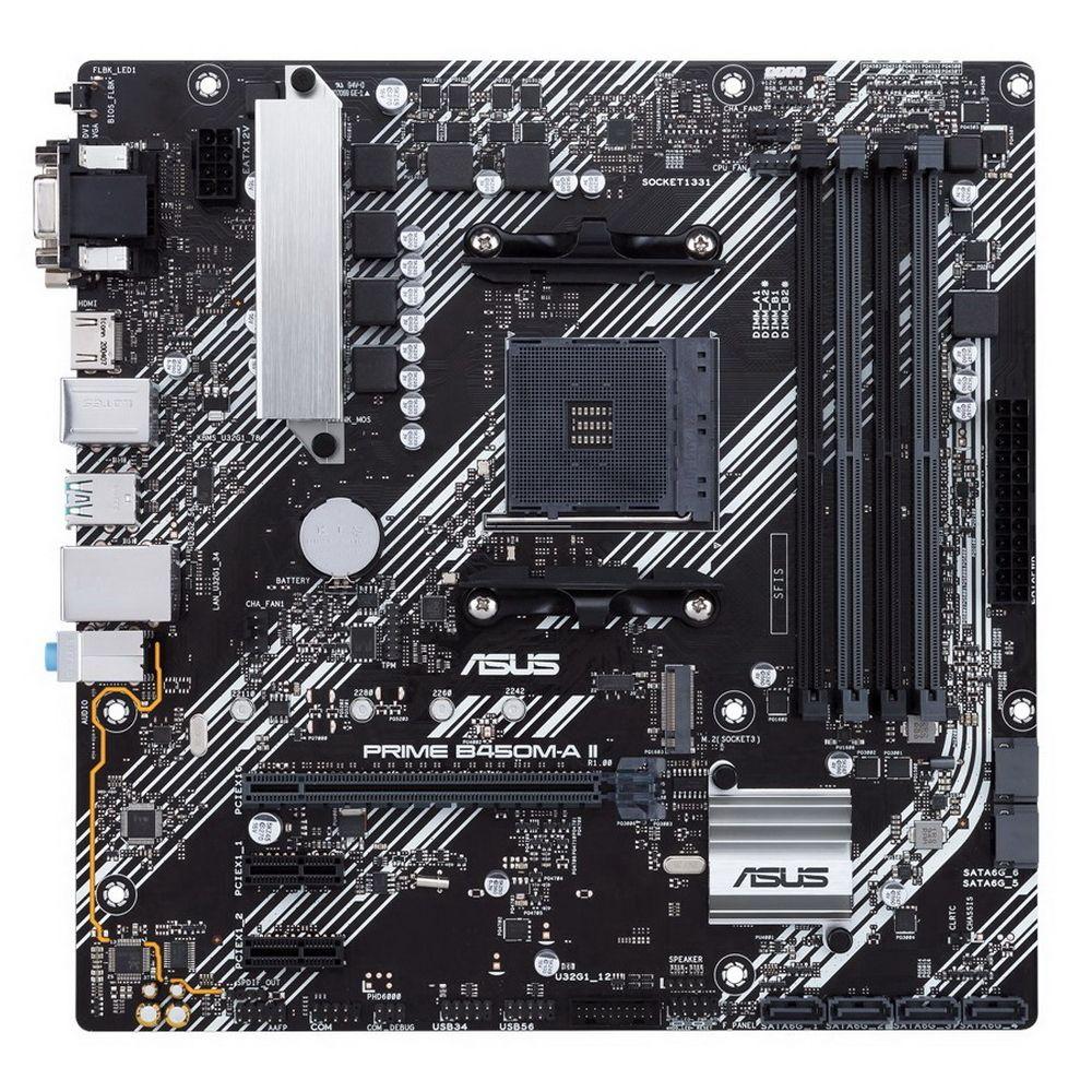 ASUS PRIME B450M-A II (Socket AM4, mATX, 4xDDR4(128GB), VGA / DVI-D / HDMI 2.0, 1xPCIe 3.0x16 / 2xPCIe 2.0, 1xLAN, 6xSATA 6Gb / s, 1xM.2, 6xUSB 3.2, 1xPS / 2)