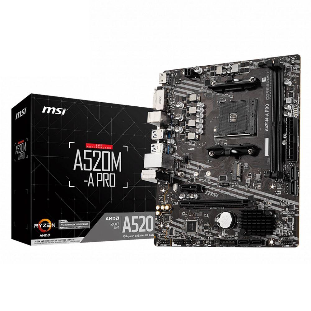 Материнская плата MSI A520M-A PRO A520, AM4, 2*DDR4, 1*PCIEx16, 1*PCIEx1, 1*M.2, 6*USB3.2Gen1, 6*USB2.0, 4*SATA3.0, 1G, DVI, HDMI, M-ATX, RTL