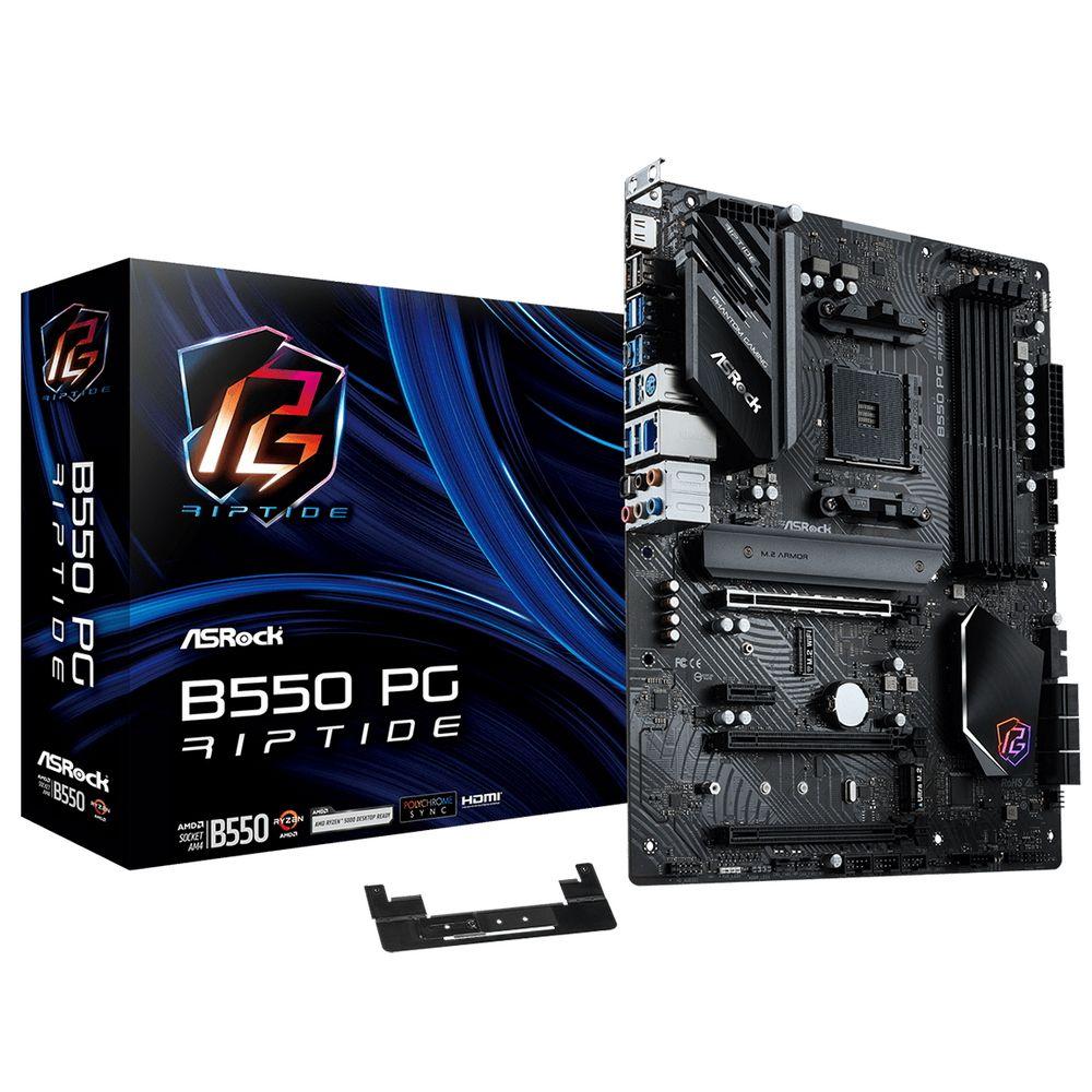 Материнская плата ASRock B550 PG RIPTIDE, Socket AM4, AMD B550, 4xDDR4-3200, HDMI, 3xPCI-Ex16, 1xPCI-Ex1, 6xSATA3(RAID 0 / 1 / 10), 3xM.2, 8 Ch Audio, 2x2.5GLan, (2+6)xUSB2.0, (7+4)xUSB3.2, (1+1)xUSB3.2 Type-C™, 1xPS / 2, ATX, RTL, {10}(935190)