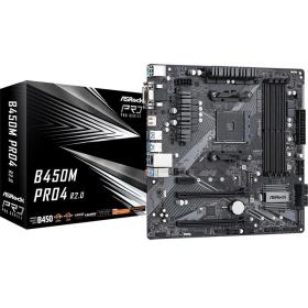 Материнская плата ASRock B450M PRO4 R2.0, Socket AM4, AMD B450, 4xDDR4-2667, D-SUB+DVI-D+HDMI, 2xPCI-Ex16, 1xPCI-Ex1, 4xSATA3(RAID 0 / 1 / 10), 2xM.2, 8 Ch Audio, GLan, (2+4)xUSB2.0, (5+2)xUSB3.1, 1xUSB3.1 Type-C™, 1xPS / 2, mATX, RTL, {20} (932793)