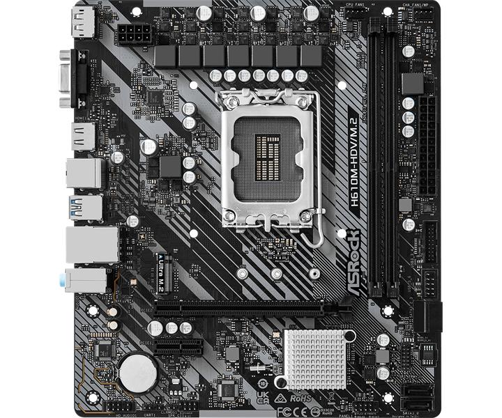 Материнская плата ASROCK H610M-HDV / M.2 R2.0, LGA1700, H610, 2*DDR4, 4*SATA, 1*M.2, 2*USB 3.2, 4*USB 2.0, 1*PCIx16, 1*PCIx1, D-Sub+HDMI+DP, mATX