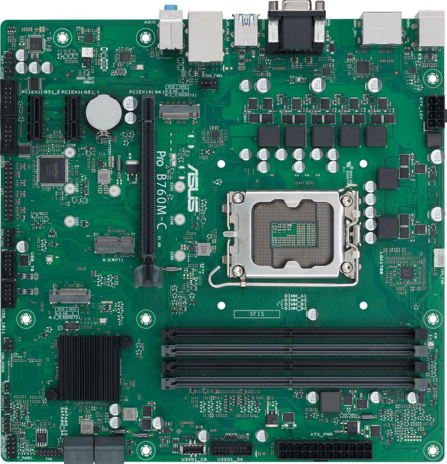 Материнская плата Asus PRO B760M-C-CSM Soc-1700 Intel B760 4xDDR5 mATX AC`97 8ch(7.1) GbLAN RAID+VGA+HDMI+DP